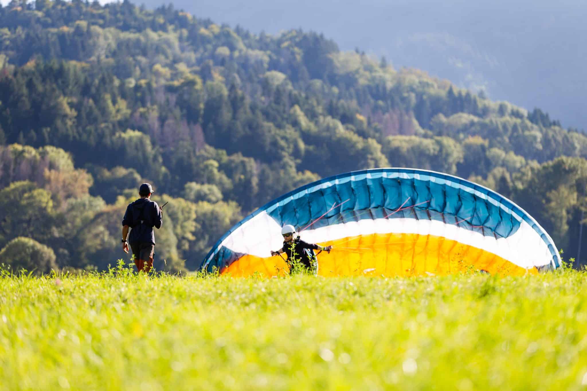 Bon à savoir : il n’y a pas de sensation de vertige en parapente car au décollage, on ne saute pas, on court ! Le vertige n’intervient que lorsqu’on voit le vide et que nos pieds sont toujours au sol, c’est la peur de tomber qui provoque cette sensation désagréable. Avant de décoller, vous ne voyez pas le vide, uniquement la pente sur laquelle vous courez pour prendre votre envol. Et lorsque vous finissez par voir le paysage s’étaler en-dessous de vos pieds, ceux-ci ne touchent déjà plus terre. Problème réglé !