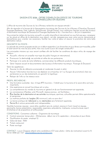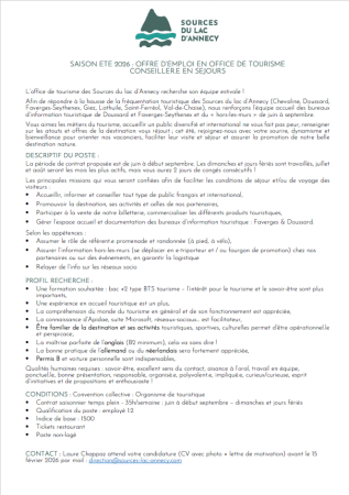 Conseiller.e en séjour – Office de tourisme des Sources du lac d’Annecy