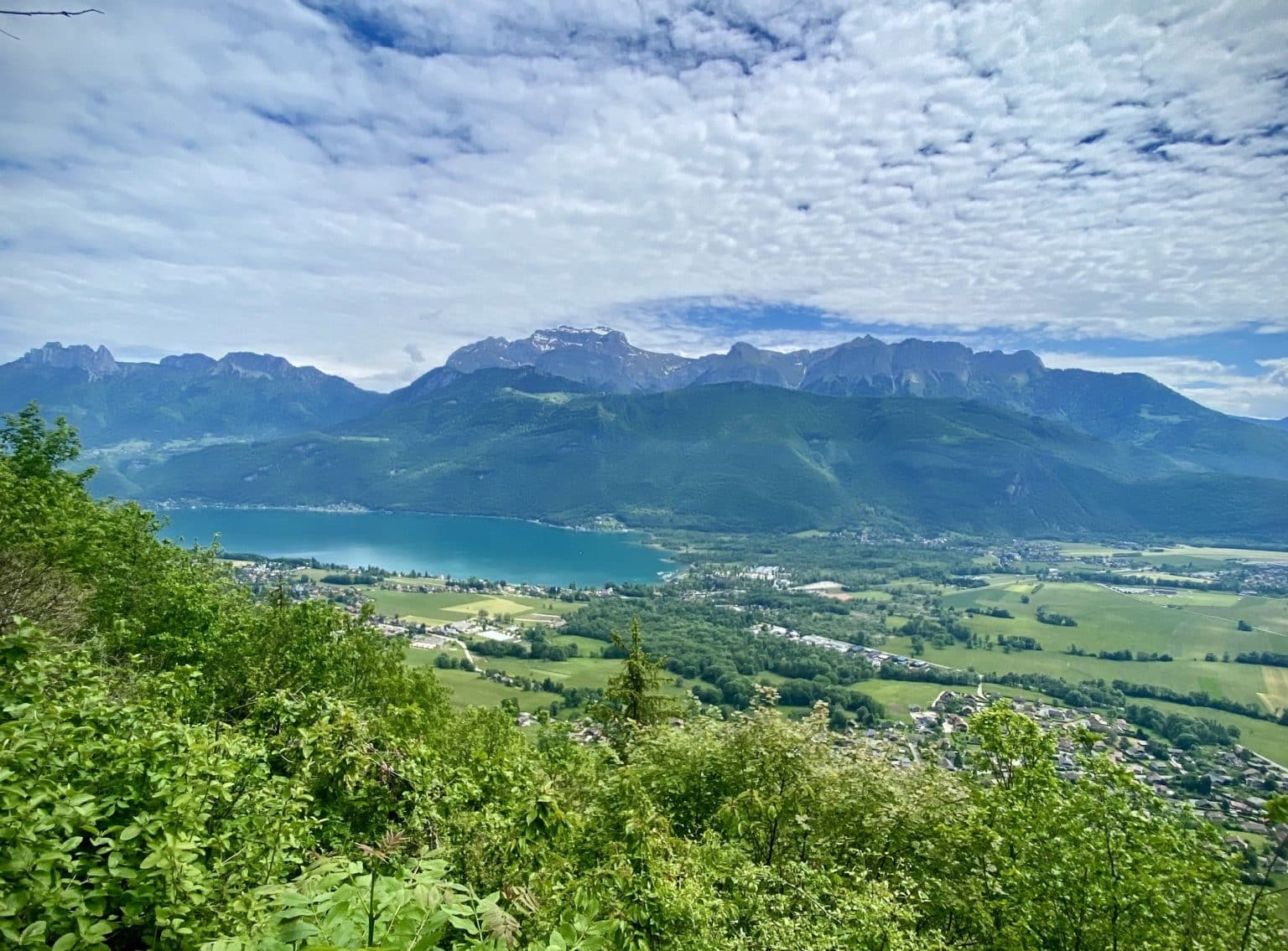 En continuant vers le hameau des Bochettes, la vue se dégage sur le lac d’Annecy et les sommets alentours, notamment en toile de fond la Tournette et son fauteuil.