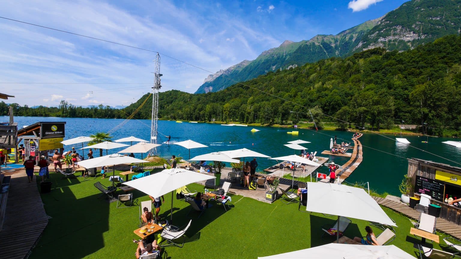 Tarif groupe à partir de 8 personnes. Tarif groupe à partir de 8 personnes. Entrée gratuite, tarifs et informations pratiques sur le site. Pas de réservations nécessaires sauf pour les groupes de 8 pers et plus. Grand Téléski : 24€ pour 1h (20€ pour les groupes) Watergames : à partir de 13€ par pers pour 1h (11.50€ pour les groupes) Waterjump accessible dès 5 ans : à partir de 18€ par pers pour 1h (16€ pour les groupes) Park accrobranche : 12€ par pers (ouvert de juin à septembre). Iles flottantes: 25€ pour 1h, terrasse pour 5 personnes max Full pass 1 journée : 69€. Water pass 1 journée: 54€ Watergames 1 heure: 13€ Paddle 1 heure : 13€ Murs d'escalade: 8€ la journée.